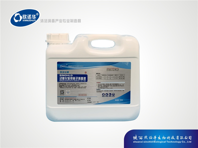 過氧化氫銀離子消毒液 過氧化氫銀離子消毒液是陜西欣諾華生物科技有限公司在借鑒國外同類型產品的基礎上,經反復試驗,研制而成的一種新型的消毒液,產品具有穩(wěn)定性好,含量高,性能優(yōu)越,技術指標完全符合國家關于食品接觸用消毒劑的要求,完全可以取代進口產品,為企業(yè)降低生產成本,增加效益。
