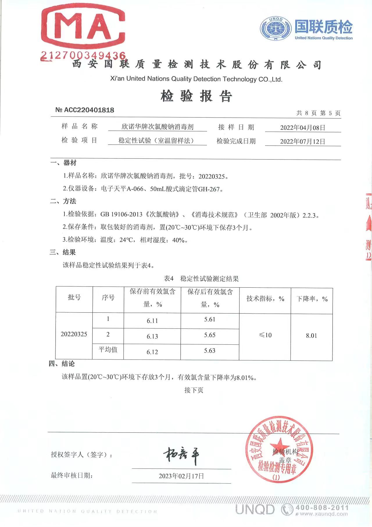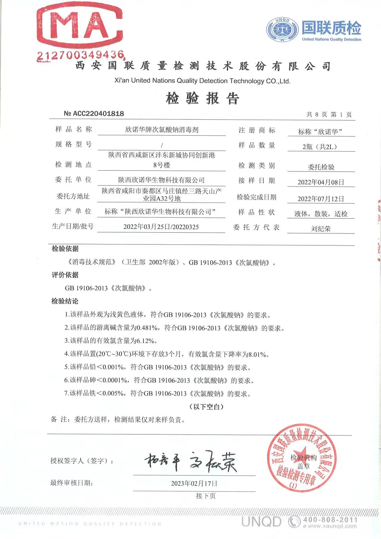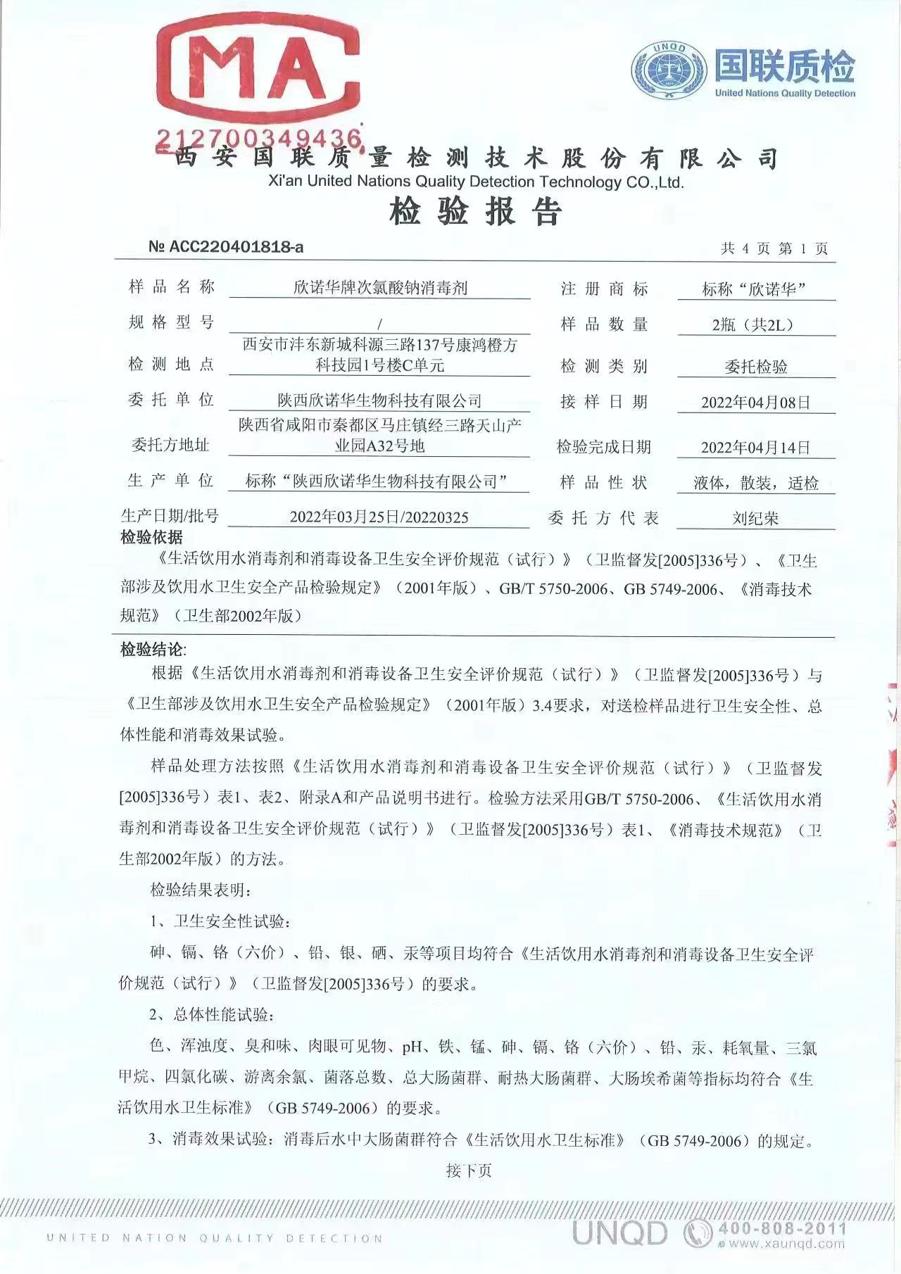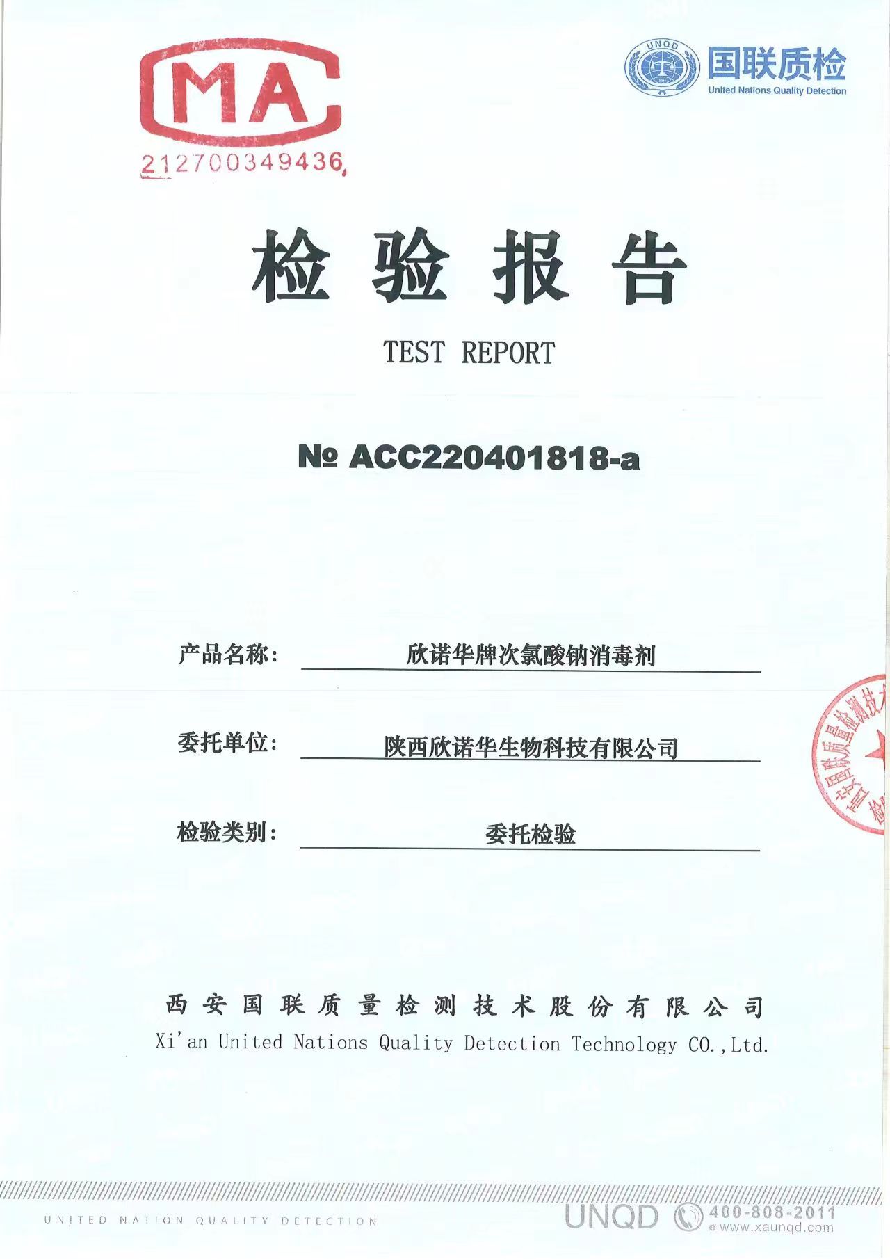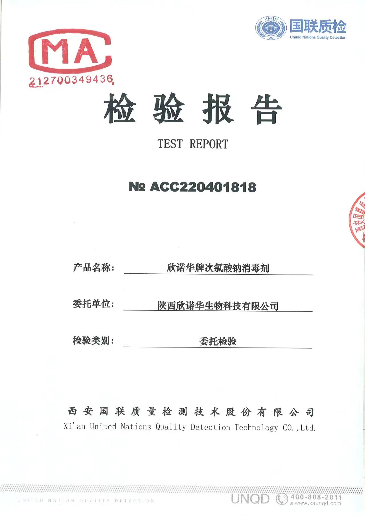 涉水次氯酸鈉消毒劑檢測報(bào)告