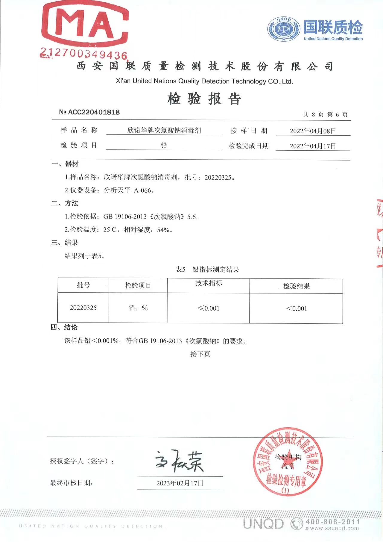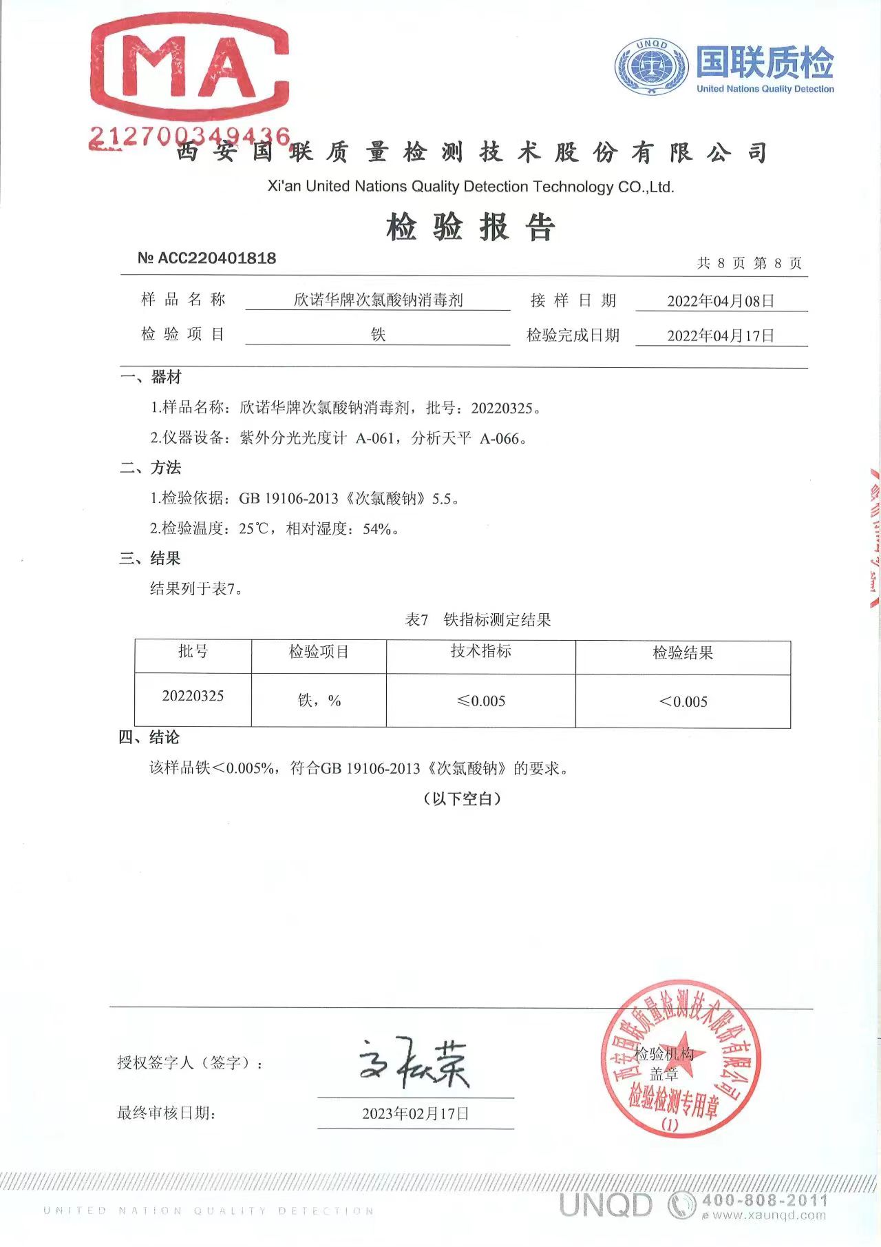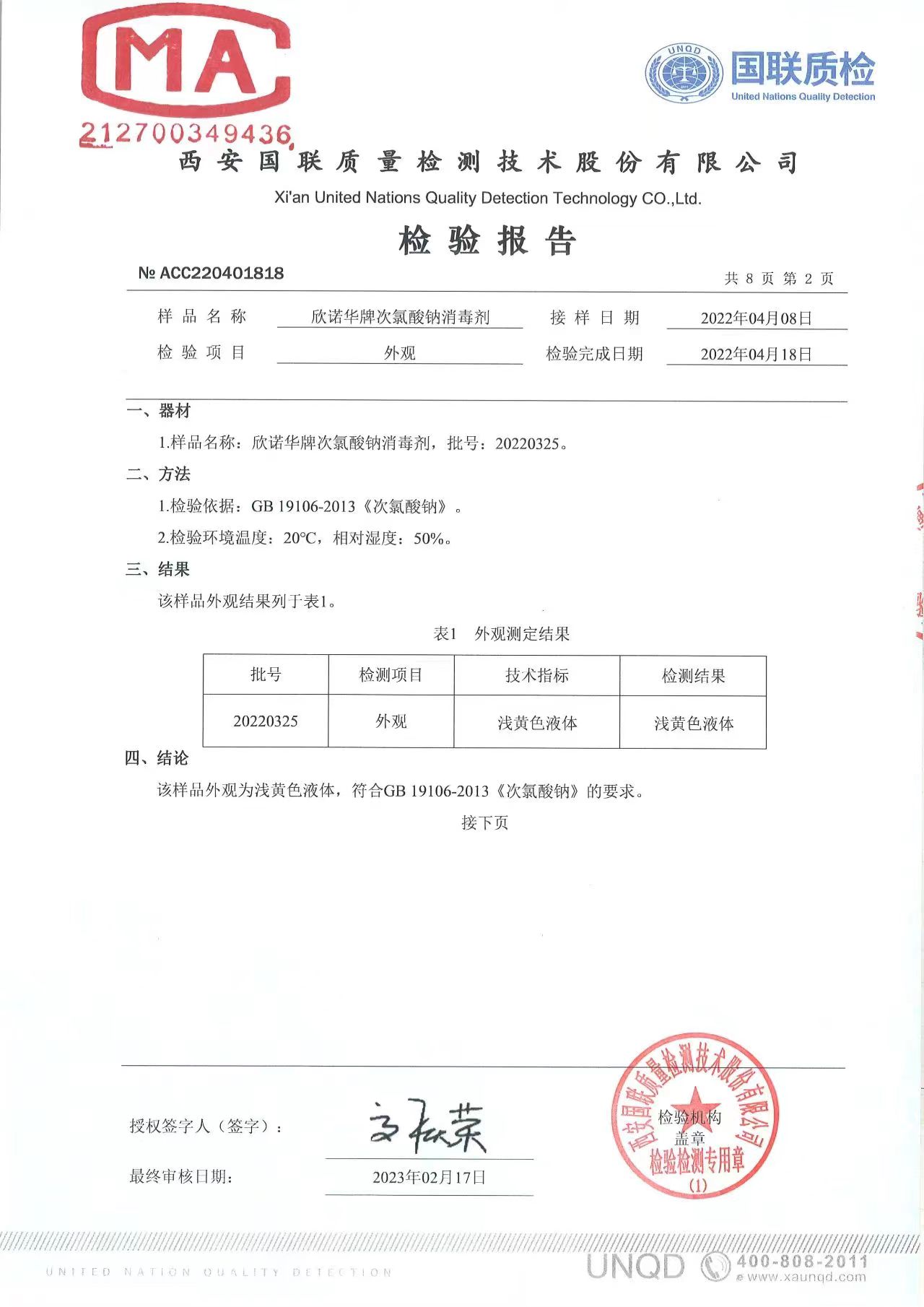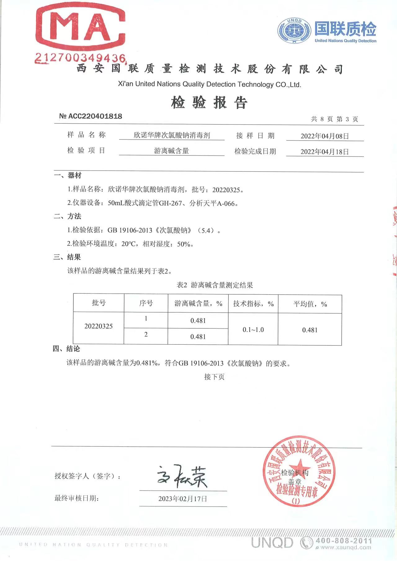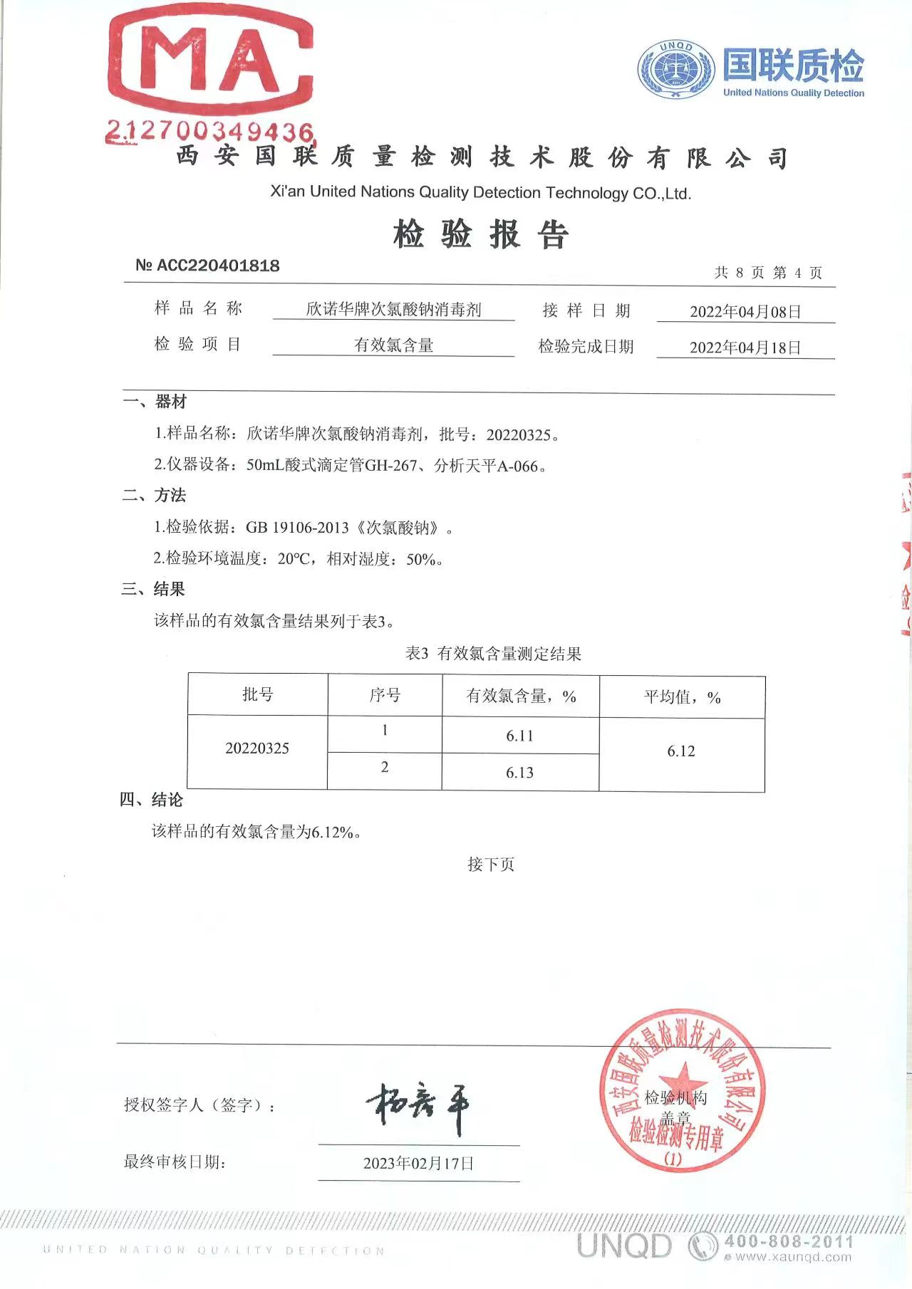 涉水次氯酸鈉消毒劑檢測報(bào)告