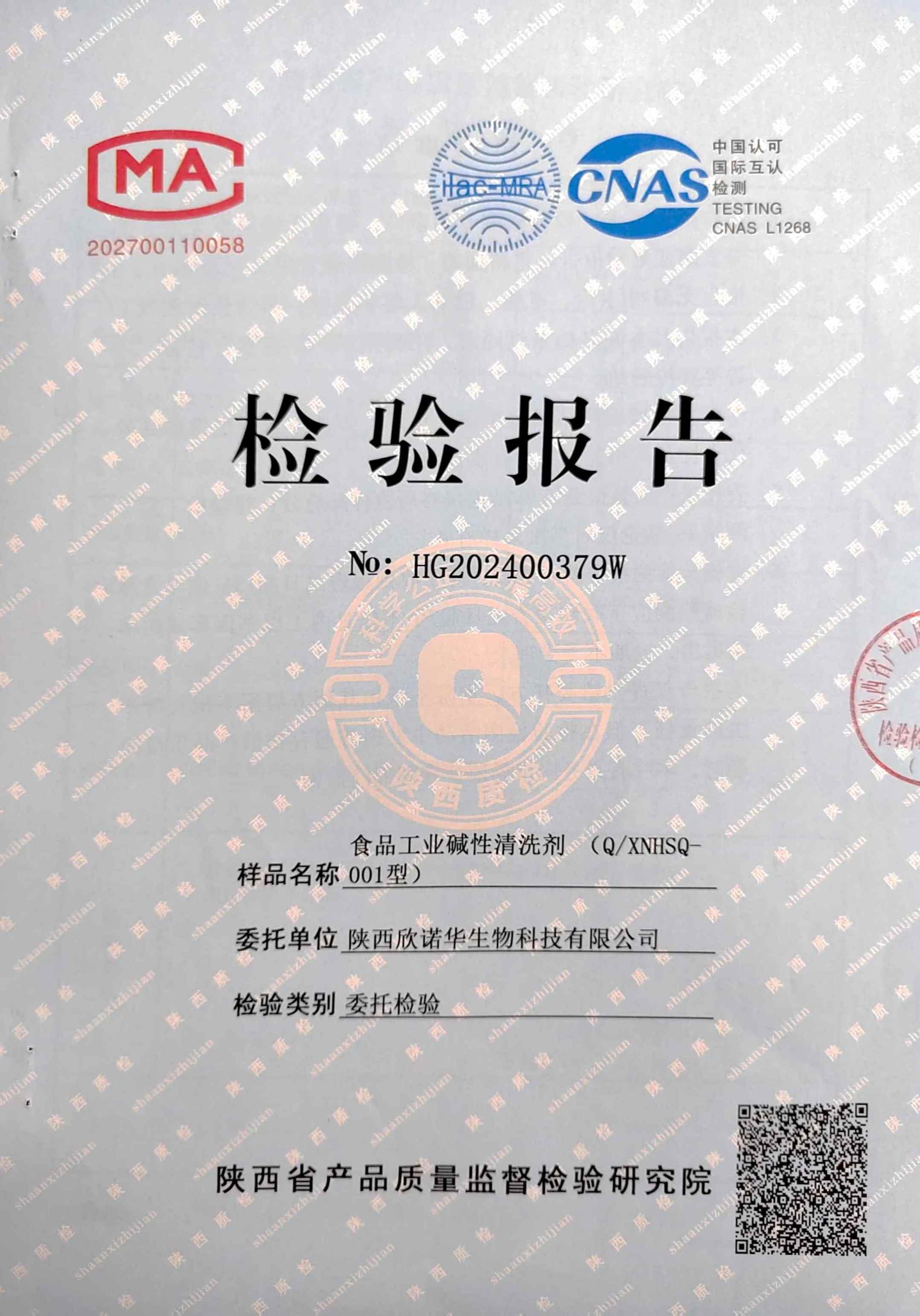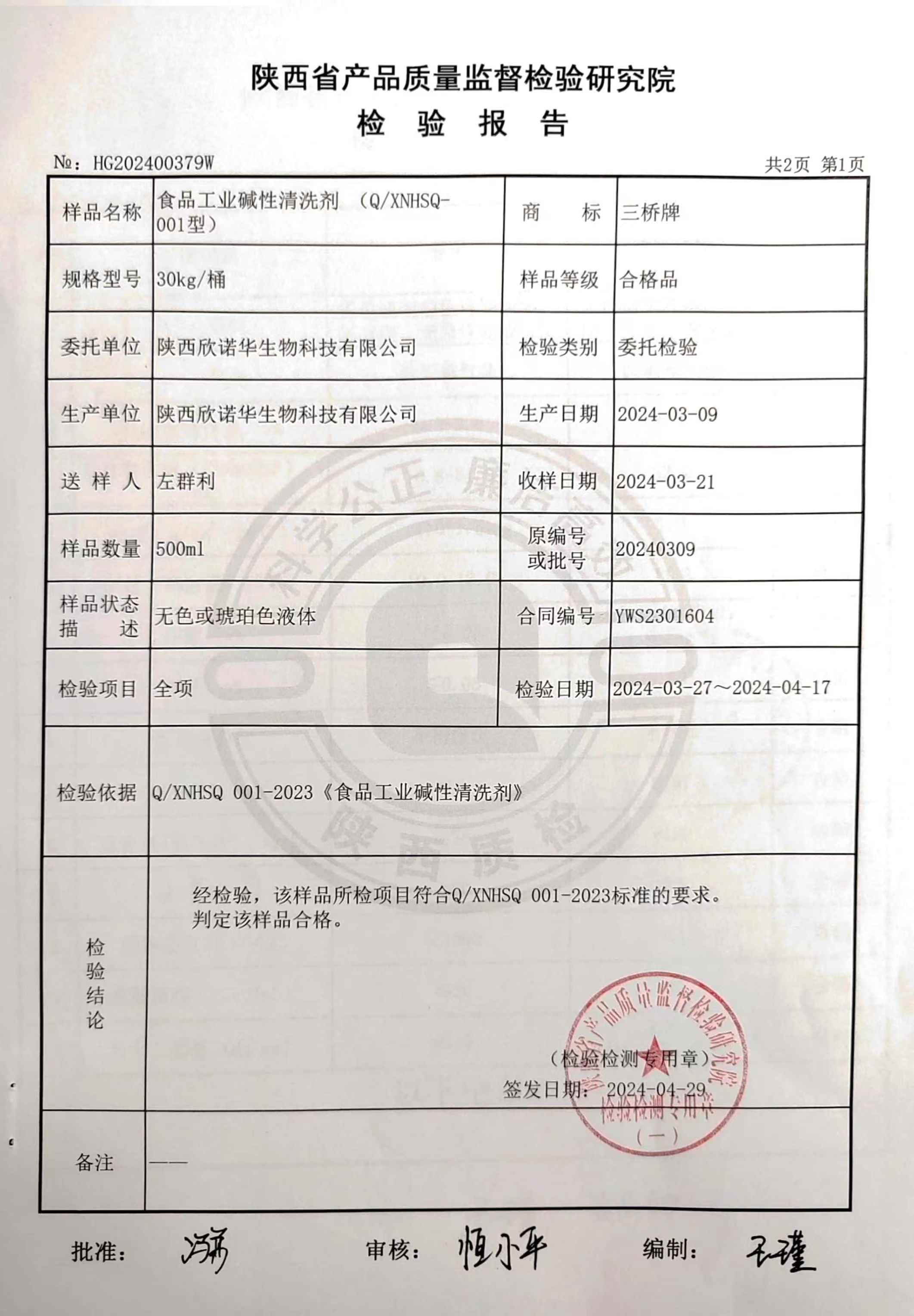 三橋牌食品工業(yè)堿性清洗劑檢測報告(2024年度)-陜西欣諾華生物科技有限公司