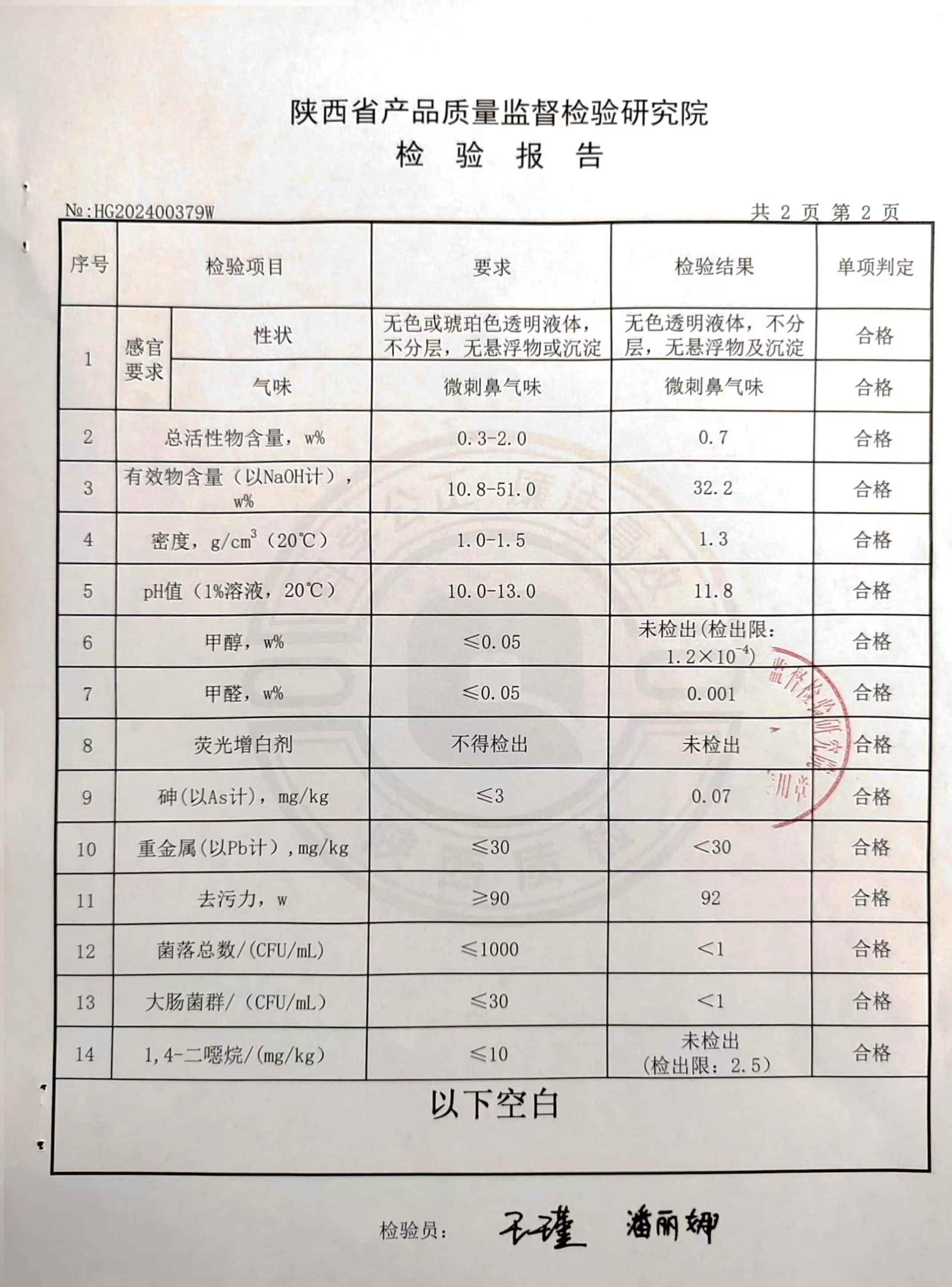 食品工業(yè)堿性清洗劑檢測報告(2024年度)