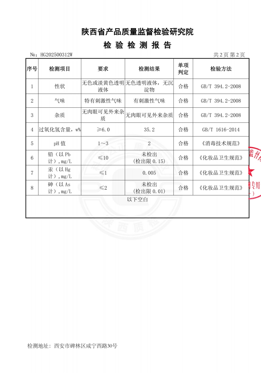 過氧化氫消毒液(食品級雙氧水)檢測報告(2025年度)